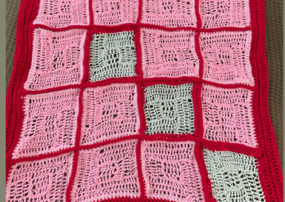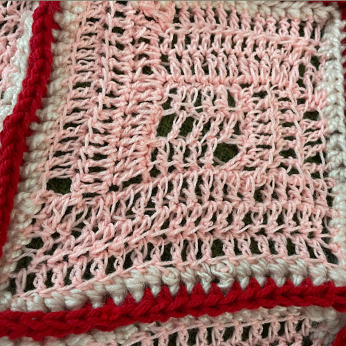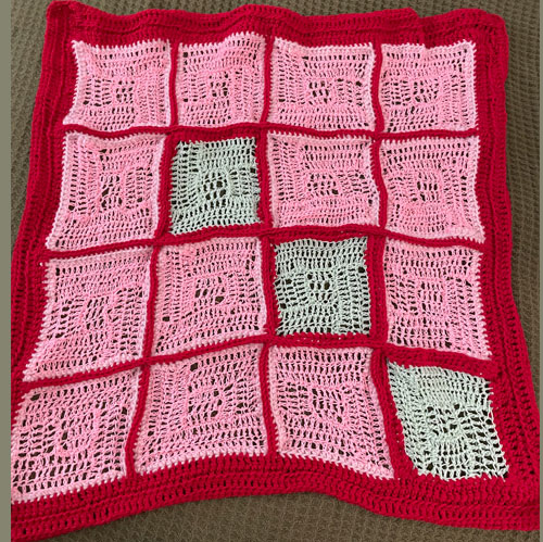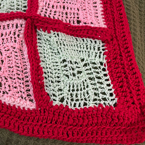 Announcing the 2nd Baby Blanket of 2025. This has been fun getting back into yarn art. Especially since I have not bought the yarn. It is a challenge to to work with yarn that is a surprise. In fact I ran out of yarn that was given to me and I had to choose from the 3 balls of yarn I had left over from old projects and the red won out. I think this blanket is fun and brilliant in color. I hope that whoever gets this feels the love.