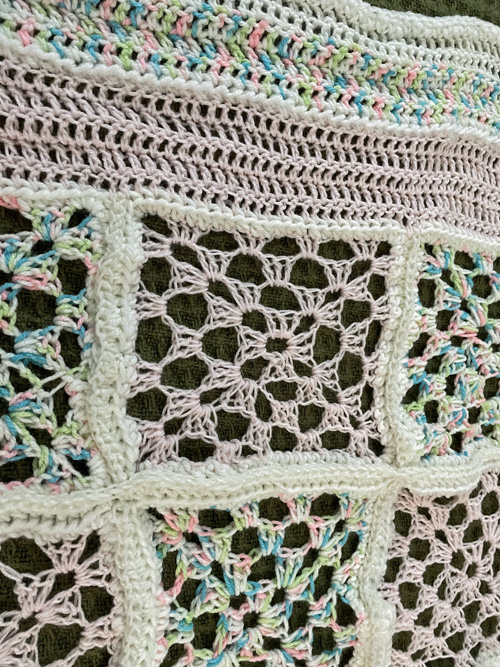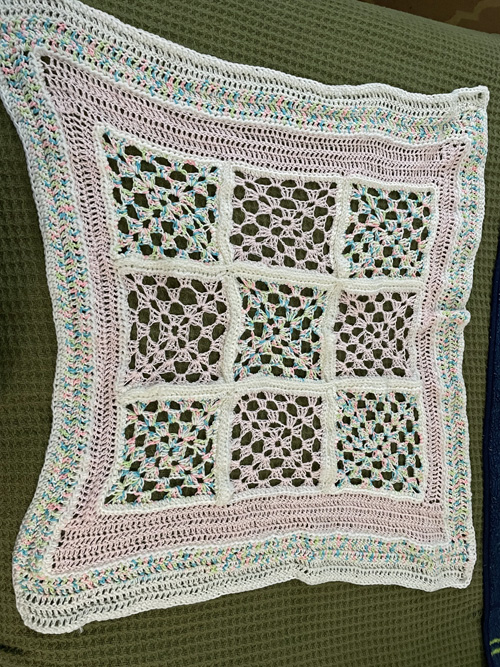 Apparently there is a shortage of auxiliary members that crochet, so now they are talking about me becoming an auxiliary member too. I haven’t begun that process at this point, but since someone sent a bag of yarn home with my wife, I decided to make use of it. Apparently there is a quota to be met and they are having trouble making it. I would hate to think that someone didn’t have a lovely, homemade blanket to wrap around their new baby. So here is the first baby blanket for 2025.